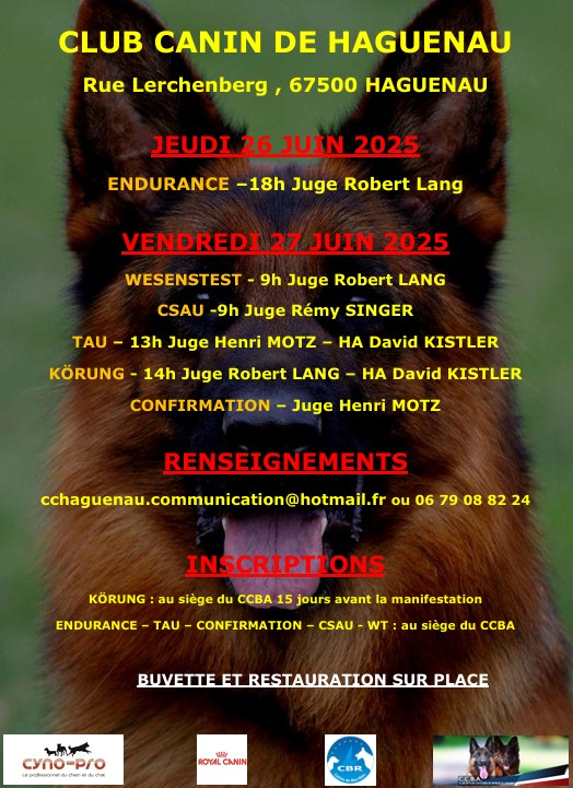 La Nationale d’élevage se déroulera pour cette année 2025 dans notre club canin à Haguenau. Les infos à venir et le déroulement de cette grande manifestation vous seront transmit dès réception par ici: